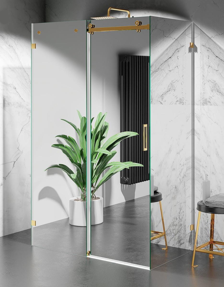 Kabina prysznicowa trójścienna LUSTRZANA z okuciami ZŁOTO SZCZOTKOWANE - model CV20P