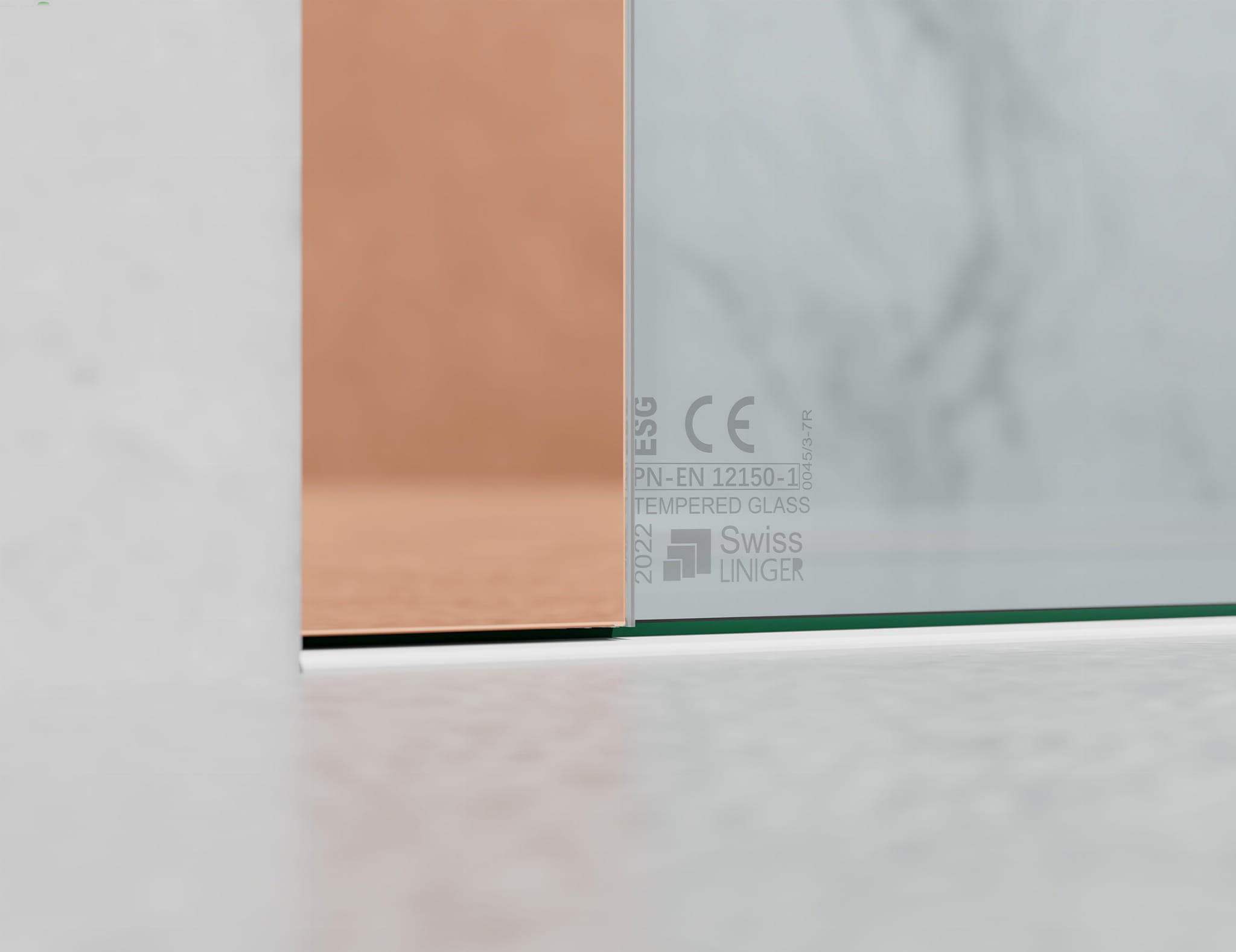 Ścianki kabiny wykonane są z hartowanego szkła o grubości 8 mm. Gwarantuje to wysoką odporność na zarysowania i uszkodzenia mechaniczne. Dzięki temu kabina nie tylko doskonale się prezentuje, ale także zapewnia bezpieczeństwo użytkowania przez długie lata.