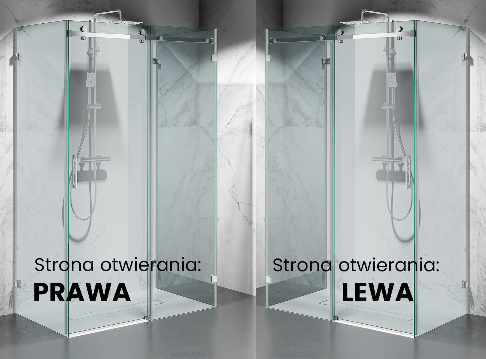 - Montażu uniwersalny lewa/prawa strona, na brodziku lub posadzce