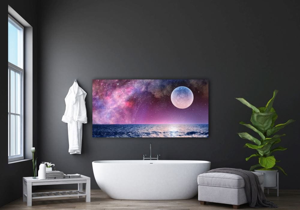 Obraz szklany wykonany na bezpiecznym szkle hartowanym stanowić może nowoczesne i eleganckie wypełnienie każdego wnętrza. Idealnie znajdują zastosowanie do: kuchni, jadalni, salonu, łazienki czy sypialni. Jedynym ograniczeniem jest tylko twoja wyobraźnia.