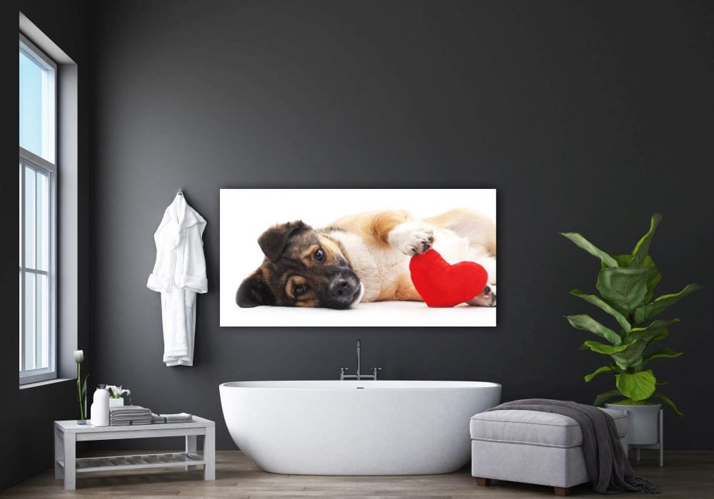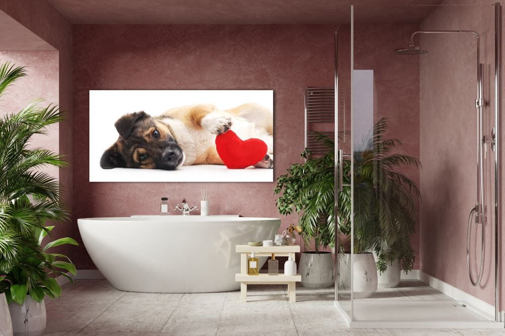 obraz na szkle Pies, miłość, serce