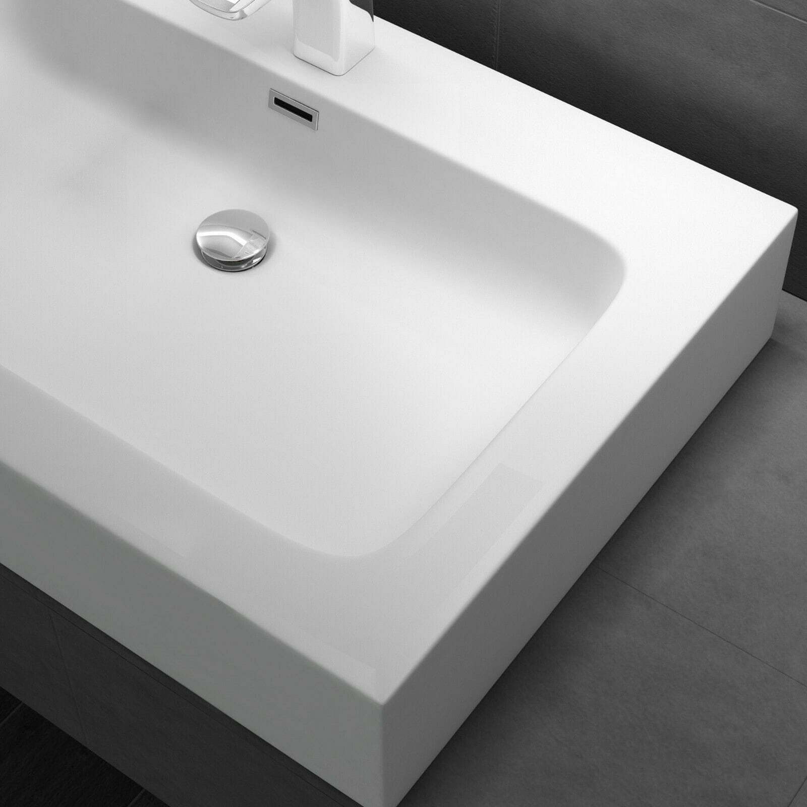 Ekskluzywna umywalka nablatowa wykonana z materiału kompozytowego, zawierającego aż 75% naturalnego, zmielonego marmuru, zapewniającego trwałą i wytrzymałą konstrukcję.